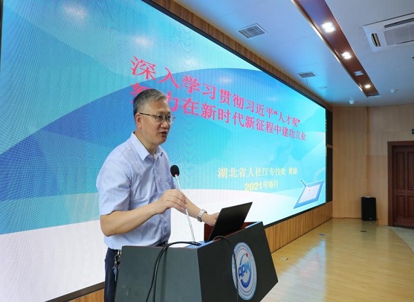 黄励做了名为“深入学习贯彻习近平“人才观”努力在新时代新征程中建功立业”的专题报告,报告详细解读了国家及湖北省的人才工作的相关政策,深入解读了青年人才工作尤其是博士后工作的重点与要求,同时也寄语我们的博士后人员要明理增信、崇德力行、要胸怀祖国、服务人民,要创新创造、勇攀高峰。号召博士后人员在这个大有可为、大有作为的新时代众心向党、自立自强,勇担重任、锐意进取,攻坚克难、追求卓越,争当新时代的奋斗者、奋进者。